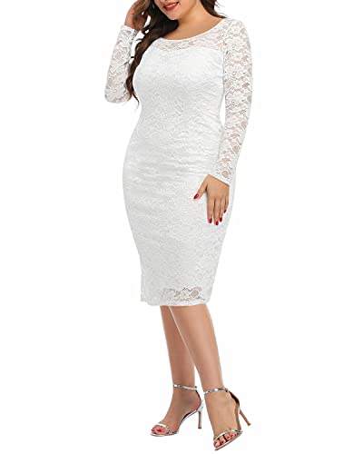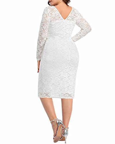 Women's Plus Size Lace Long Sleeve V-back Stretchy Bodycon Midi Wedding Cocktail Pencil Dress