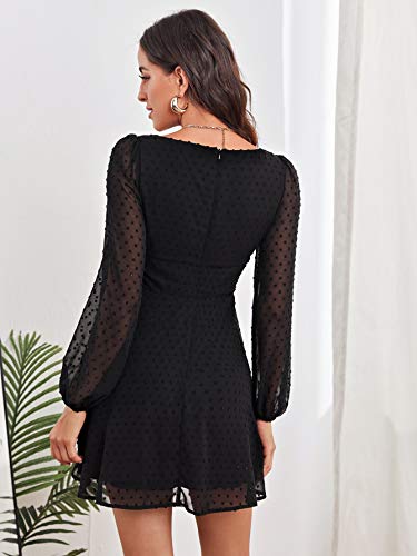 Women's Polka Dots Mesh Square Neck Bishop Sleeve Chiffon Dress