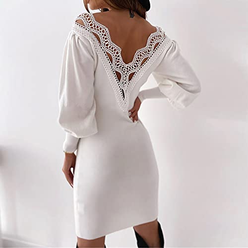 Women's Sexy Backless Mini Dress Lace Patchwork Long Sleeve Solid Skirts Ladies Fall And Winter Outdoor Dresses