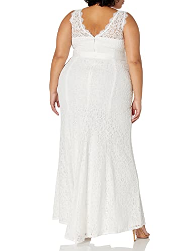 Women's Sleeveless Lace Gown With Illusion V-neckline