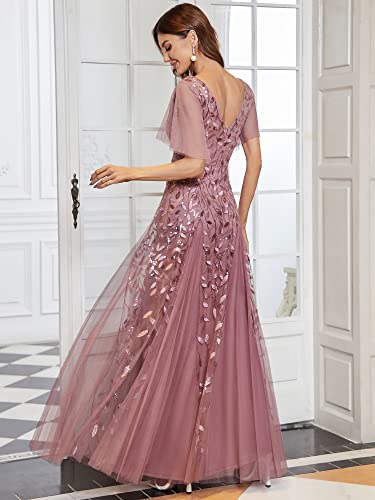 Women's V-neck Embroidery Short Sleeve Wedding Party Evening Dress 0734
