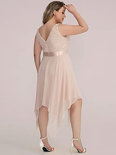 Women's V Neck Lace Embroidery Asymmetric Chiffon Evening Gowns Cocktail Dress 0207-pz