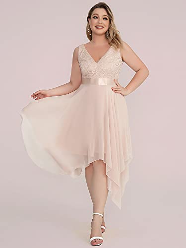 Women's V Neck Lace Embroidery Asymmetric Chiffon Evening Gowns Cockta – Original Brand