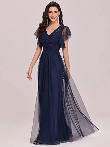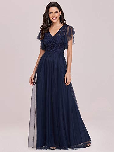 Womens V Neck Lace Sleeve A Line Formal Party Dress 0226 | Women's Lac – Original Brand