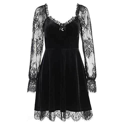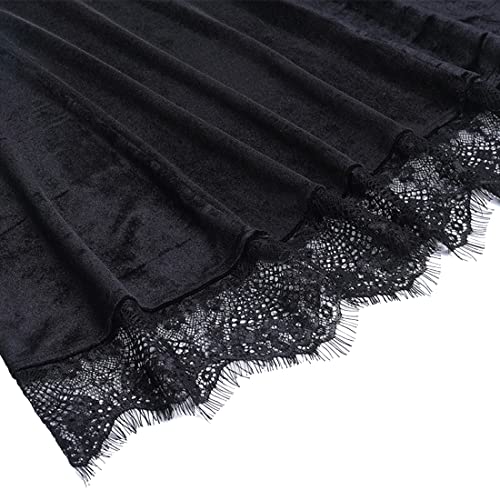 Womens V Neck Velvet Lace Ruffle Gothic Punk Party Spaghetti Strap Mini Dress