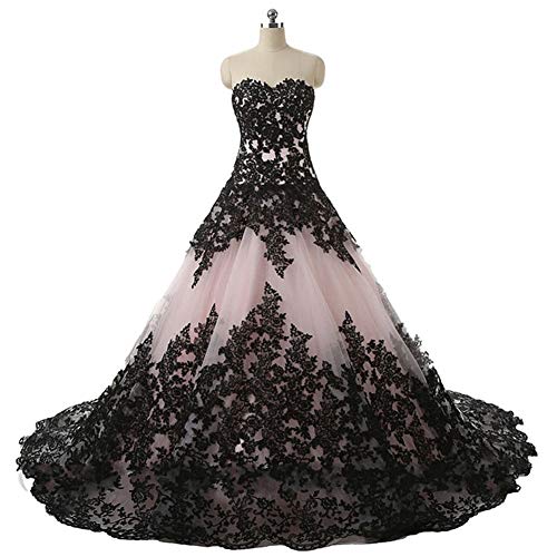 Women's Vintage Gothic Wedding Dress Black Appliques Prom Ball Gowns