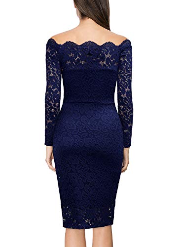 Women's Vintage Off Shoulder Flare Lace Slim Cocktail Pencil Dress