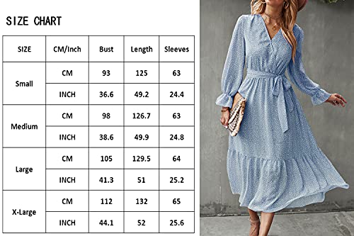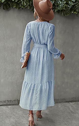 Womens Dresses Short Sleeve Wrap V Neck Ruffle Floral Printed Midi Dress with Belt