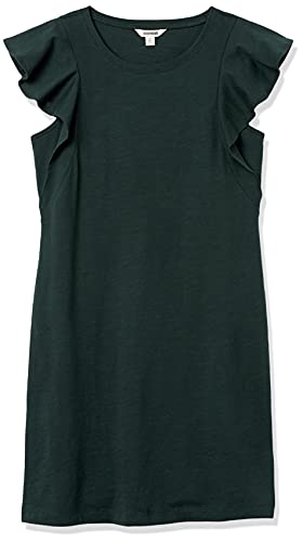 Women's Relaxed Fit Heavyweight Cotton Slub Ruffle Sleeve Dress