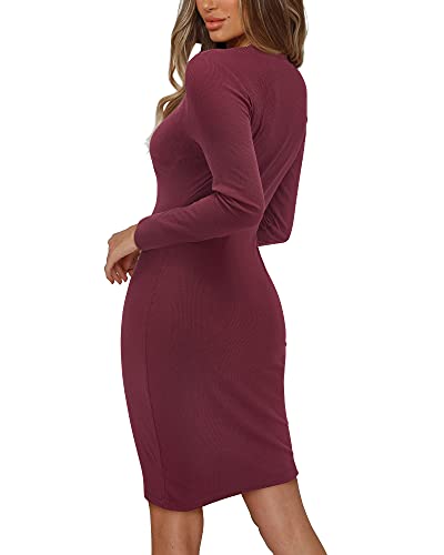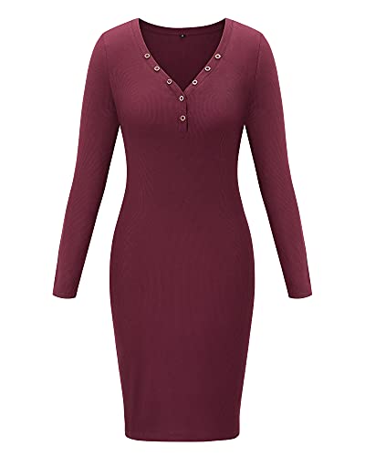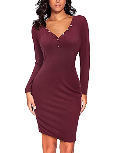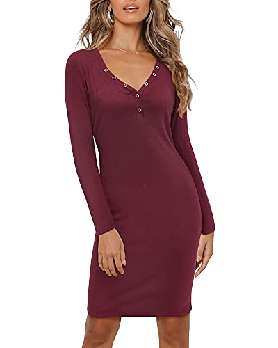 Button closure Feature: The sweater night dresses for women is sexy style, V-neck, long sleeve, solid color, bodycon, knee length, button down, pull on closure. Soft and stretchy material makes it easy to put on or put off the long sleeve bodycon dress Material: Not-see through, soft and stretchy fabric makes the sexy bodycon dress comfy to touch and wear. You will felling well with the light-weight and breathable material