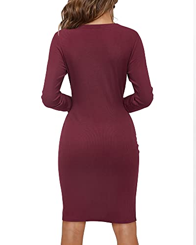 Women's V-Neck Long Sleeve Bodycon Dress Button Down Midi Party Dress