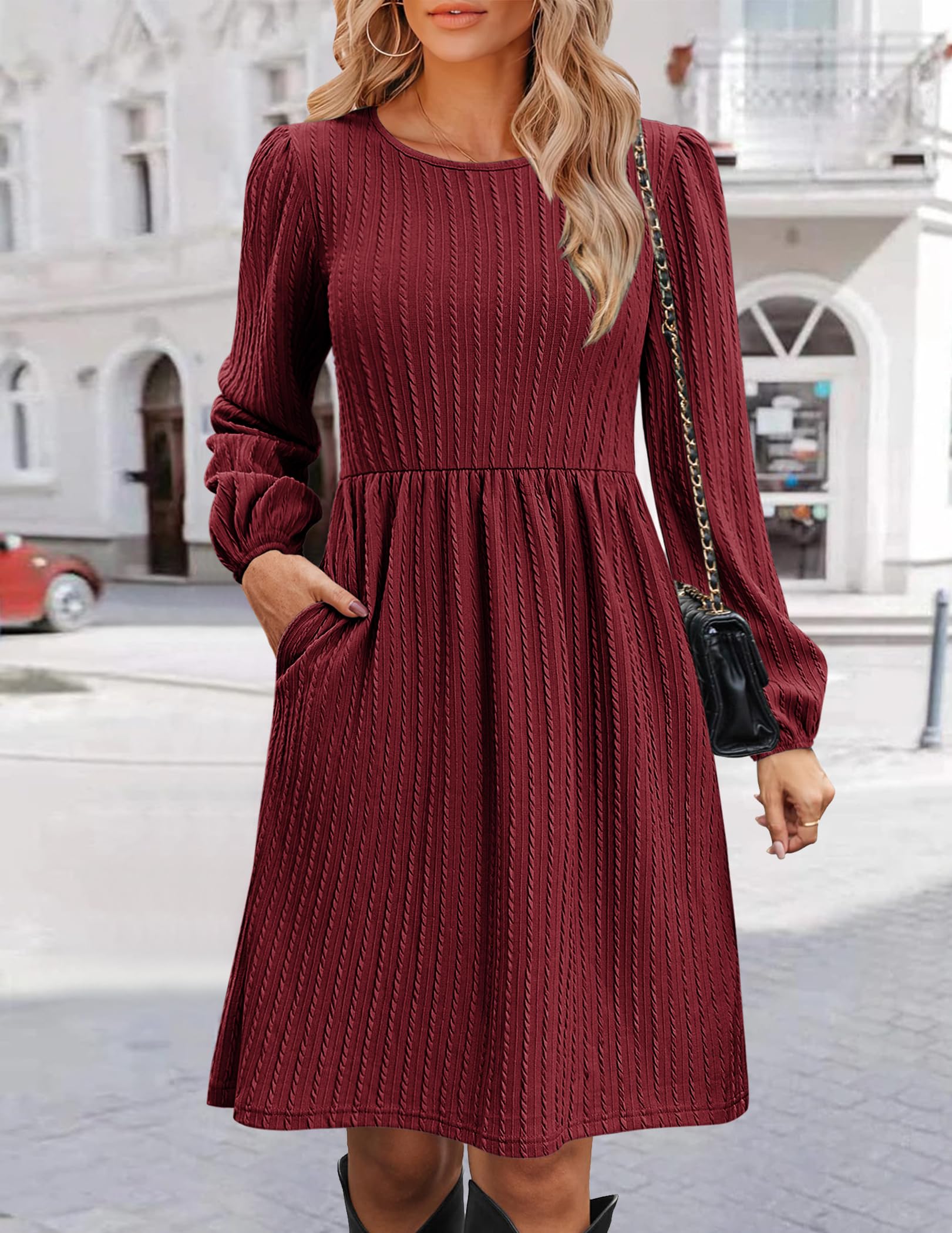 - Unique designLong lantern sleeve dress/Casual sweater dress/Women round neck dress/long sleeve Knit dress/womens Baby doll dress/ Women Knee Length dresses