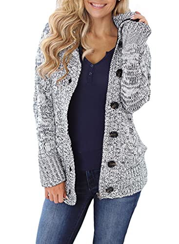Women Hooded Knit Cardigans Button Cable Sweater Coat