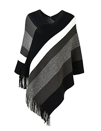 Women's Elegant Knitted Poncho Top with Stripe Patterns and Fringed Si – Original Brand