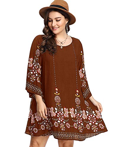 Romwe Women's Plus Size Boho Bohemian Tribal Print Summer Beach Dress