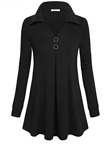 Bebonnie Womens Long Sleeve Casual Lapel V Neck Pullover Tunic Blouse Tops with Buttons