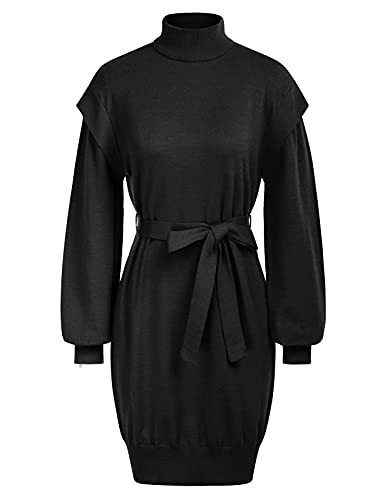 GRACE KARIN Women's Long Sleeve Mock Neck Elasticity Bodycon Knit Pullover Sweater Dress with Belt