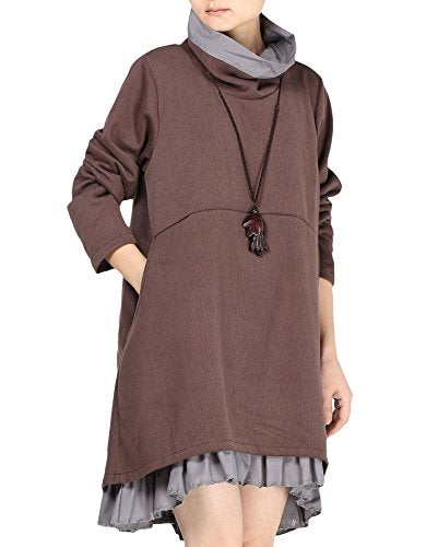 Ruffle Hem Style,Double Layer Turtleneck Sweatshirt Dress