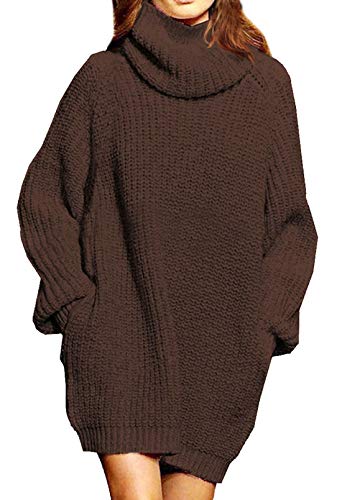 Selowin Women's Loose Turtleneck Long Sleeve Pullover Sweater Knit Dress with Pockets