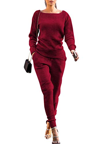 VNVNE Womens Fall Rib-Knit Pullover Sweater Top & Long Pants Set 2 Piece Outfits Tracksuit