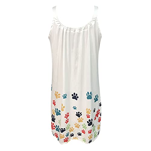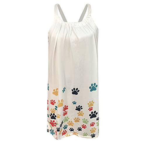 Dress Womens Sleeveless Sling Round Neck Midi Dress Summer Printed Loose Casual Seaside Dress Cute Paw Print Beach Dress