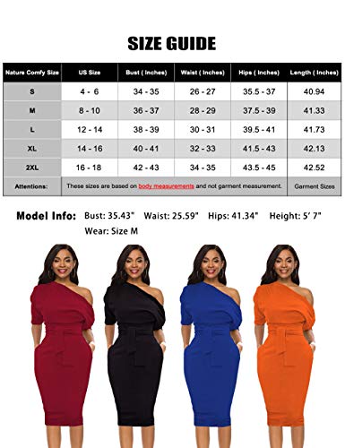 Elegant Womens Wear to Work Casual one Shoulder Belted Pencil Dress with Pockets