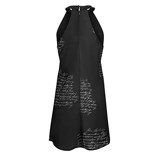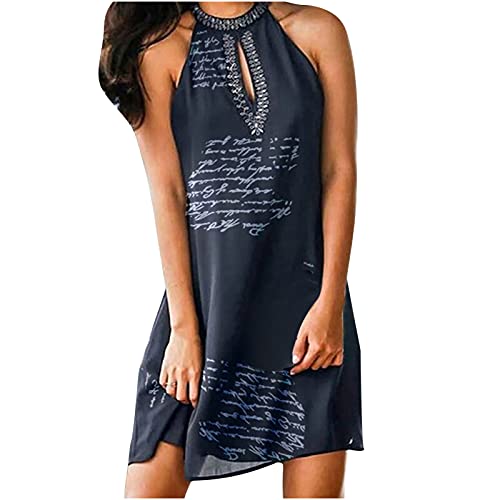 Fashion Ladies Sexy Casual Sleeveless Halter A-line Skirt Printing Dress UK Size Party Dress