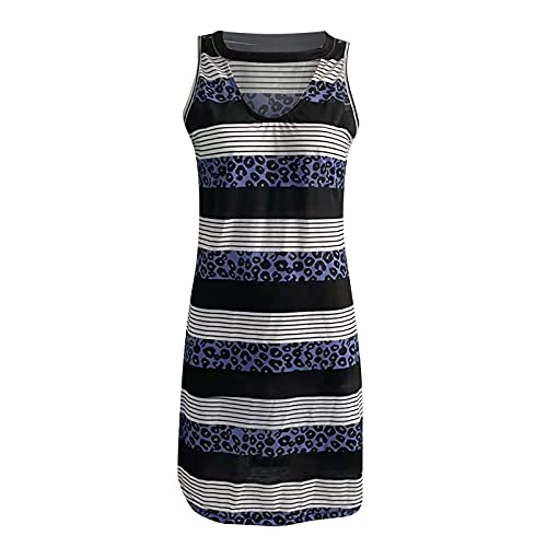 Fashion Ladies V-Neck Printing Leopard Loose Casual T-Shirt Sleeveless Dress UK Size Party Dress