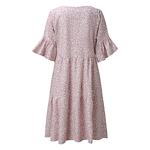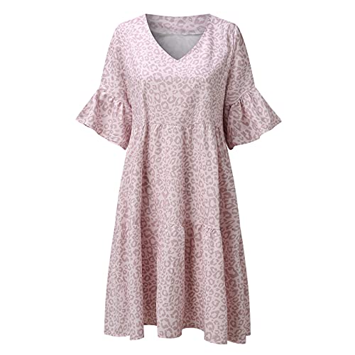 Flared Dress Women's V Neck Short Sleeve Print Plus Size Casual A Line Midi Dress
