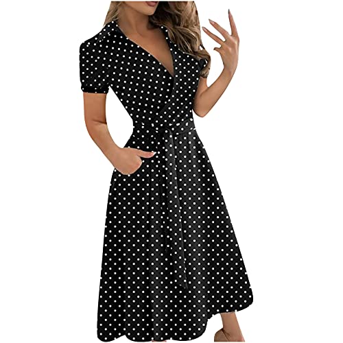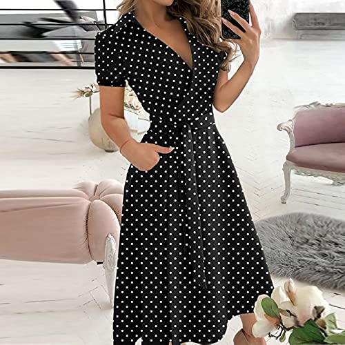 Ladies Casual Loose Bandage Short Sleeve Solid V-Neck Ankle-Length Dress Bodycon Dress Office Wear for Casual Club Cocktail Evening Gowns Work UK Size 8-26