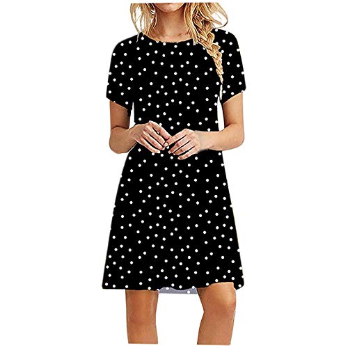Ladies Casual Short Sleeve O-Neck Solid Ladies Loose Mini Dress Bodycon Dress Office Wear for Casual Club Cocktail Evening Gowns Work UK Size 8-26