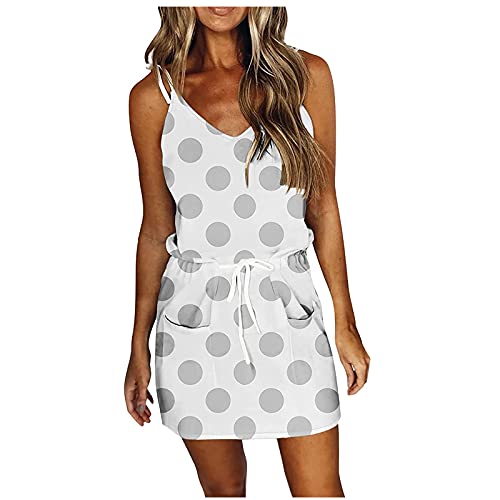 Ladies Casual V-Neck Sleeveless Bandage Wave Point Printing Loose Sling Dress UK Size Party Dress