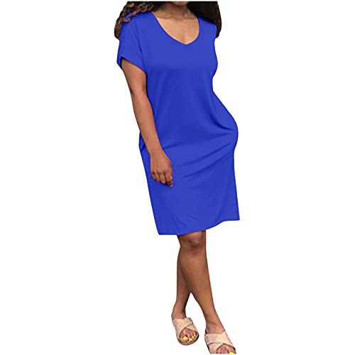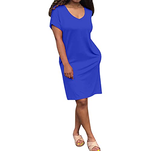 Ladies Solid Casual Ladies Short Sleeve V-Neck Pockets Ladies Dress Bodycon Dress Office Wear for Casual Club Cocktail Evening Gowns Work UK Size 8-26