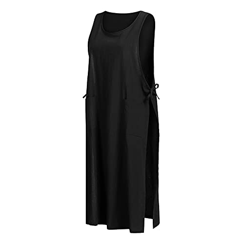 Ladies Summer Retro Round Neck Loose Lace-up Vest Dress UK Size Party Dress