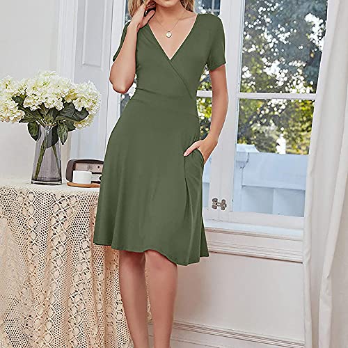 Ladiess Dress Solid Casul V-Neck Knee-Length Short Sleeve Long Dress Bodycon Dress Office Wear for Casual Club Cocktail Evening Gowns Work UK Size 8-26
