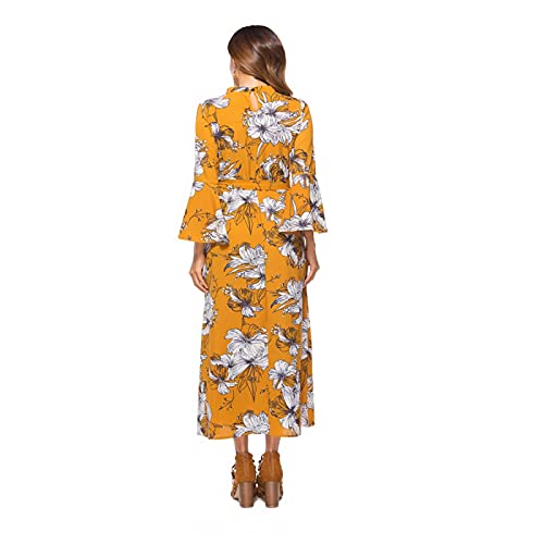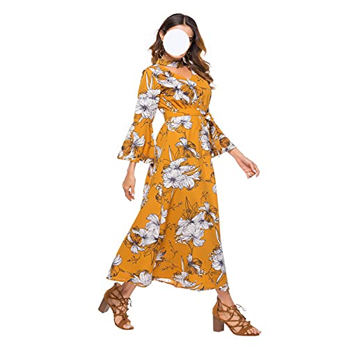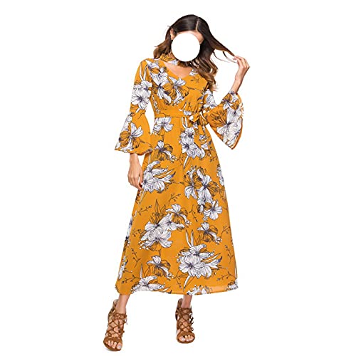Mini Dress 3/4 arm V-Neck Print with Waist Long Skirt Collar Shift Dress Women Graduation Dress