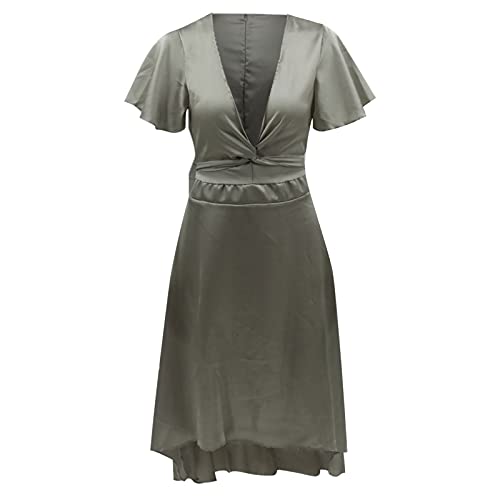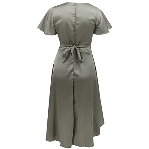 Summer Dresses for Women, Ladies V-Neck Solid Irregular Short Sleeve Strappy Casual Long Dress Party UK Size