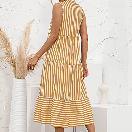 Summer Dresses for Women, Ladies's Fashion Summer Sleeveless Stripe Print Casual Dress V-Neck Button Dress Party UK Size