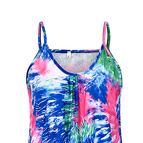 Summer Dresses for Women, Ladies's Tie Dyed V-Neck Drawstring Sling Dress with Gradient Stripe Party UK Size