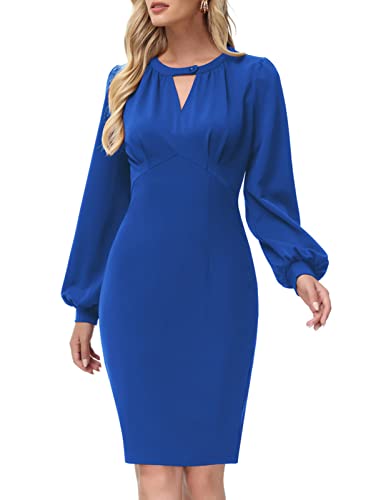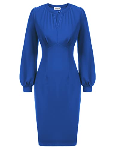 Women Lantern Long Sleeve Office Pencil Dress Wear to Work Sheath Dresses Knee Length