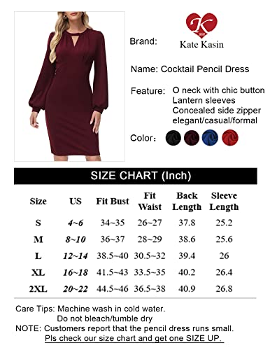 NOTE: Customers report that the pencil dress runs small. Pls check our size chart and get one SIZE UP. Make sure that the dress does not squeeze your armpits or pull the seams. Machine wash in cold water. Do not bleach/tumble dry. A great starter pencil dress: Tapered skirt shape fits the waist beautifully. Classic neckline with chic button. Concealed side zipper. Lantern sleeves with ribbed cuff. Back slit makes you feel more cozy when walking in that slim shape. Elegant long sleeve pencil dress: 95%Polyester+5%Spandex >>Soft, cozy, skin-touch, moderately stretchy