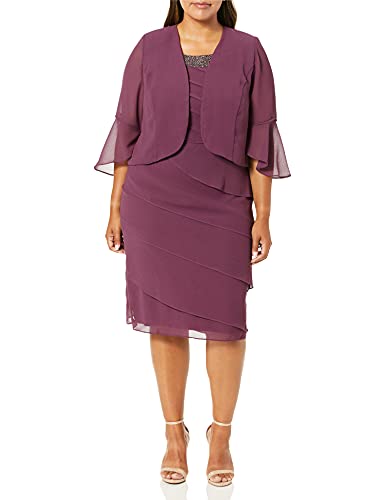 Women's Beaded Neckline Tierd Jacket Dress Mother of The Bride