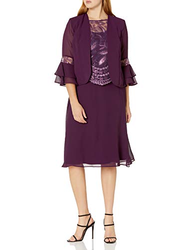 Women's Bell Sleeve Jacket Dress with Scalloped Edge Mother of The Bride