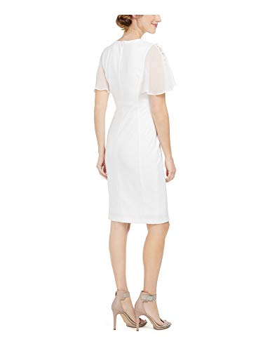 Women's Button Chiffon Flutter Sleeve Sheath Dress