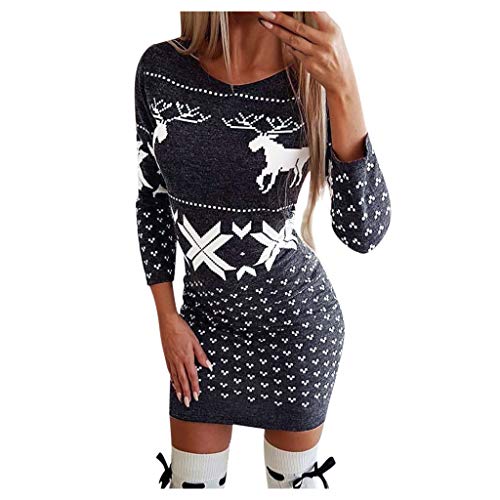 Women's Dresses, Ladies Christmas Print Casual Dress Sweater Retro Skirt Evening Dress
