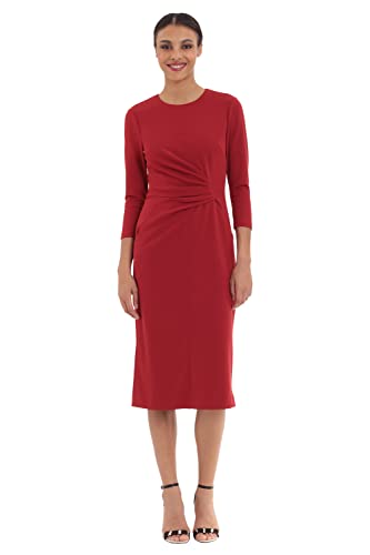 Women's Front Drape Slant Pocket Sheath Dress, Red Dahlia, 6