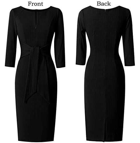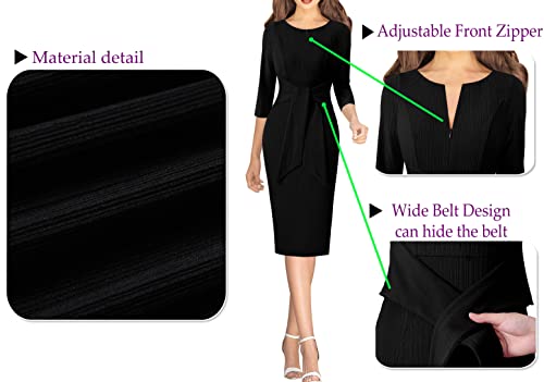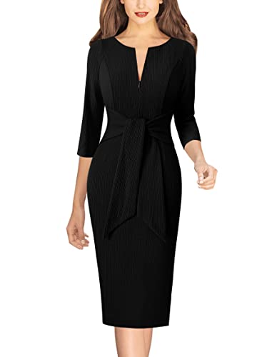 Womens Front Zipper Tie Waist Slim Work Business Office Bodycon Pencil Dress