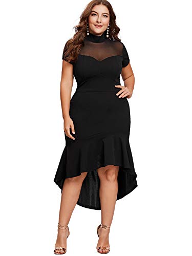Women's Plus Size Elegant Mesh Frill Ruffle Round Neck Pencil Party Cocktail Dress