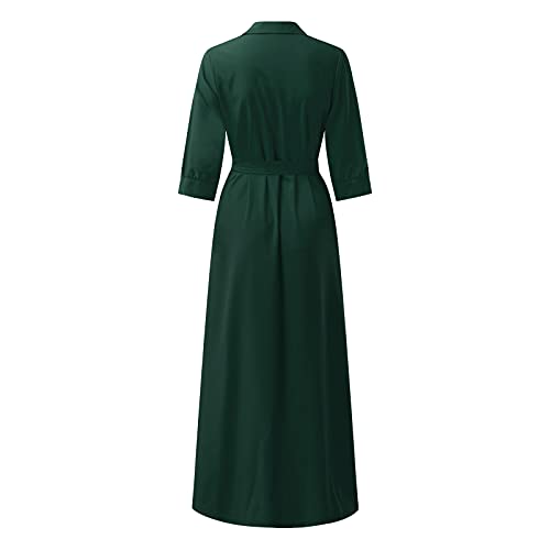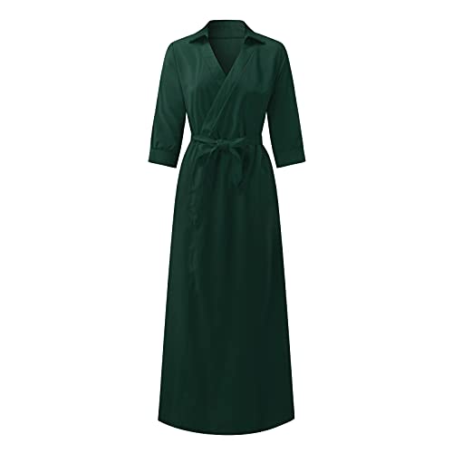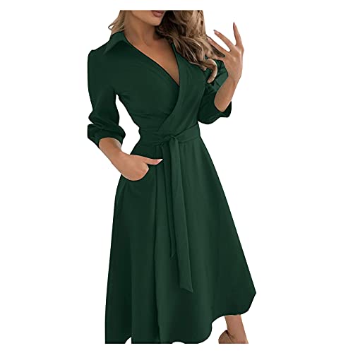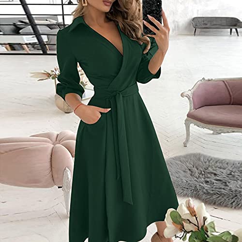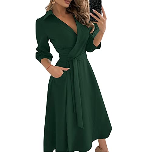 Women's Plus Size Long Sleeve V Neck Belted Bodycon Dress Solid High Waist Office Work Dress Ruffle Midi Dress