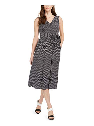 Women's Plus Size Sleeveless V Neck Midi Dress with Self Sash Waist